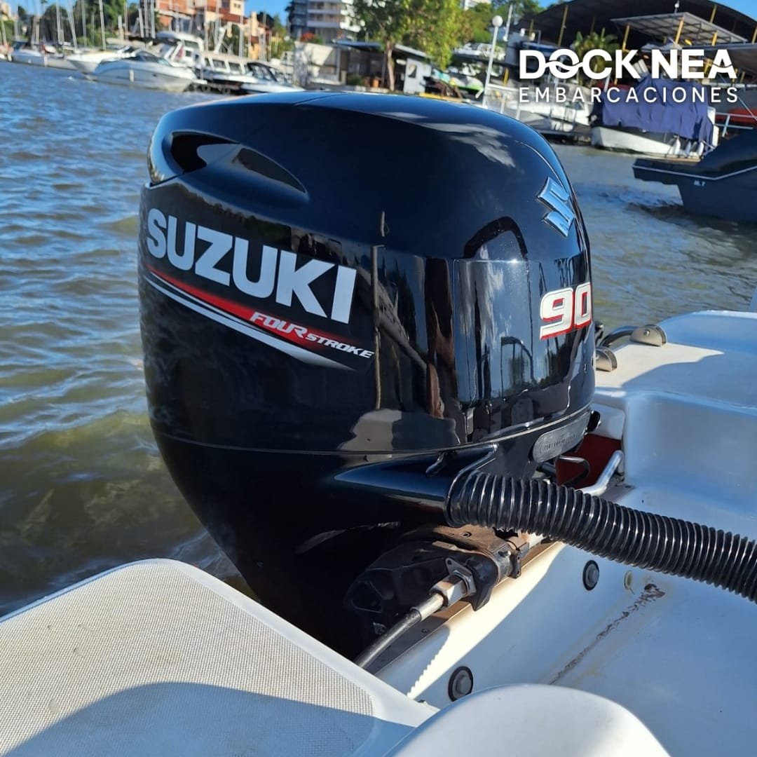 Equipado con un motor Suzuki 90 de 4 tiempos, la Geuna 540 garantiza potencia y eficiencia. Este motor proporciona un manejo suave y una excelente economía de combustible, permitiendo que disfrutes de tus aventuras marinas por más tiempo.